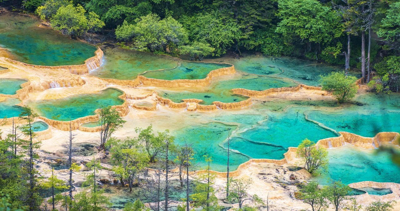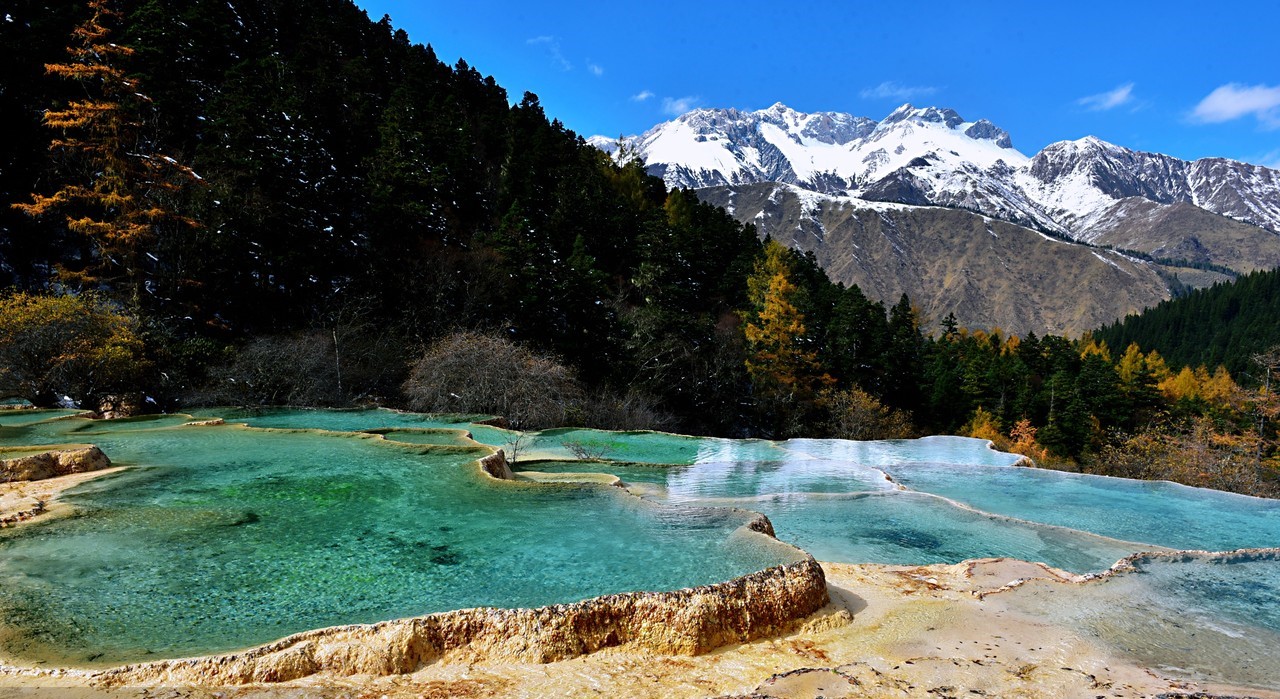 Discover Huanglong, a UNESCO site and China's best-preserved high-plateau wetland, famous for its four unique features: colorful travertine pools, snow-capped peaks, lush forests, and serene valleys. To maximize your time, an uphill chairlift is included. You will then enjoy a leisurely downhill walk through the stunning landscape.