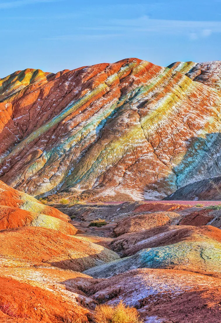 Today we will begin with a visit to the colorful Danxia landforms in the morning