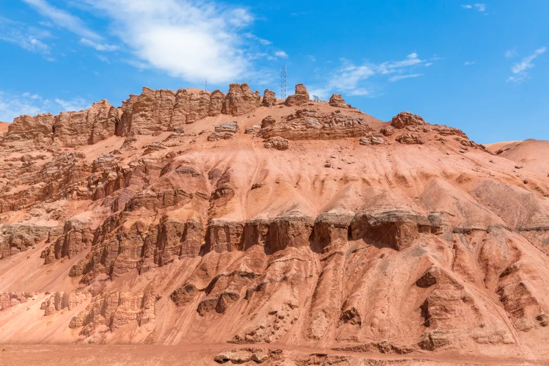. This place is a representative of colored Danxia landform in China. Hills there consist of several rock strips which show different colors under the sunlight, and that's how this place got the nickname, Rainbow Mountains. Then we take the train to Jiayuguan in the afternoon.